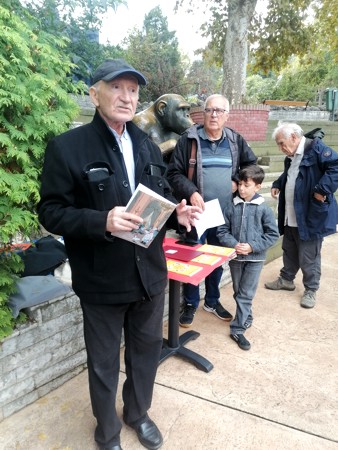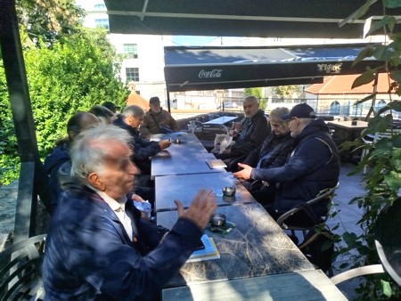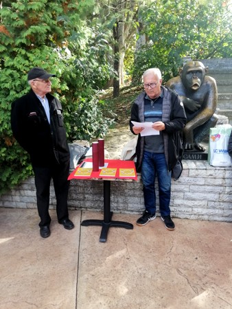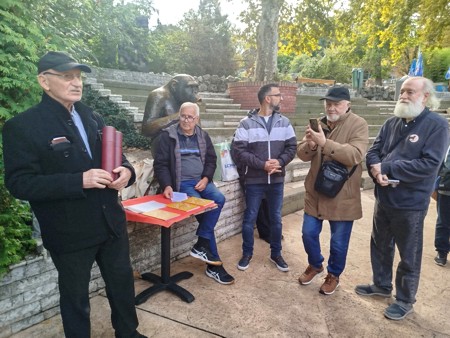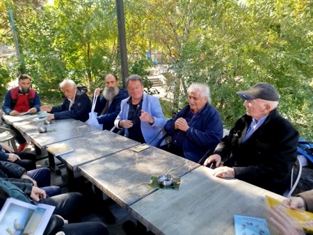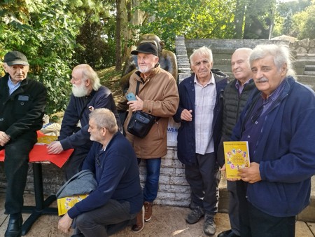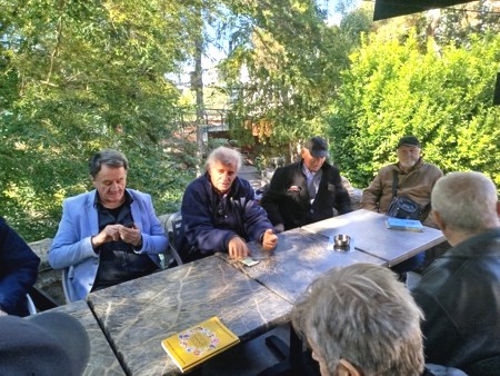 Седе с лева на десно: Никола Драгаш, карикатуриста,