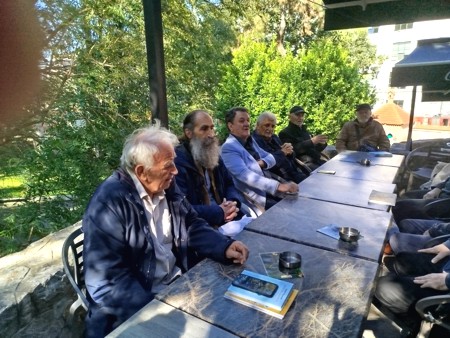 Seated from left to right: Nikola Dragaš, cartoonist, Nedeljko